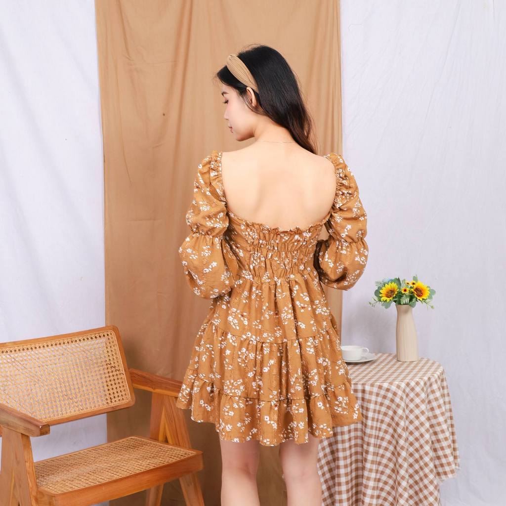 With its feminine design and flattering fit, this mini milkmaid dress pairs beautifully with ankle boots for a trendy day look or with heels for an elevated evening ensemble. Embrace your whimsical side with this captivating dress that celebrates both charm and sophistication!”