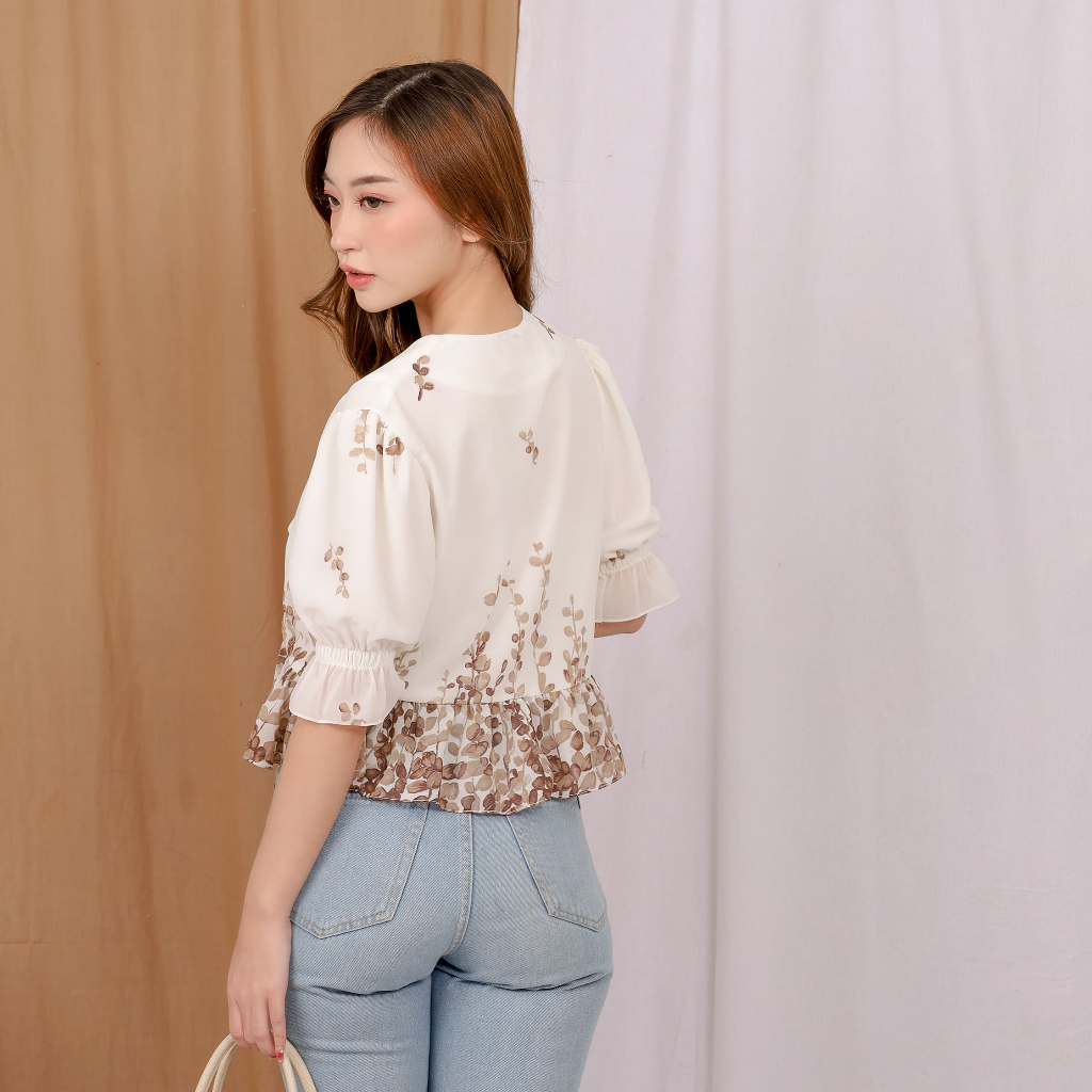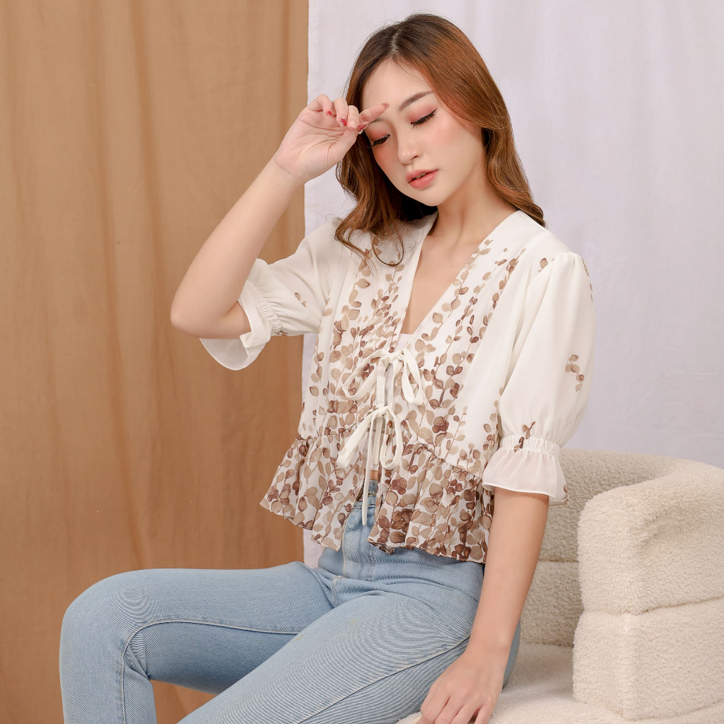 AE Piona – Ruffled Ribbon Blouse Bunga-Bunga