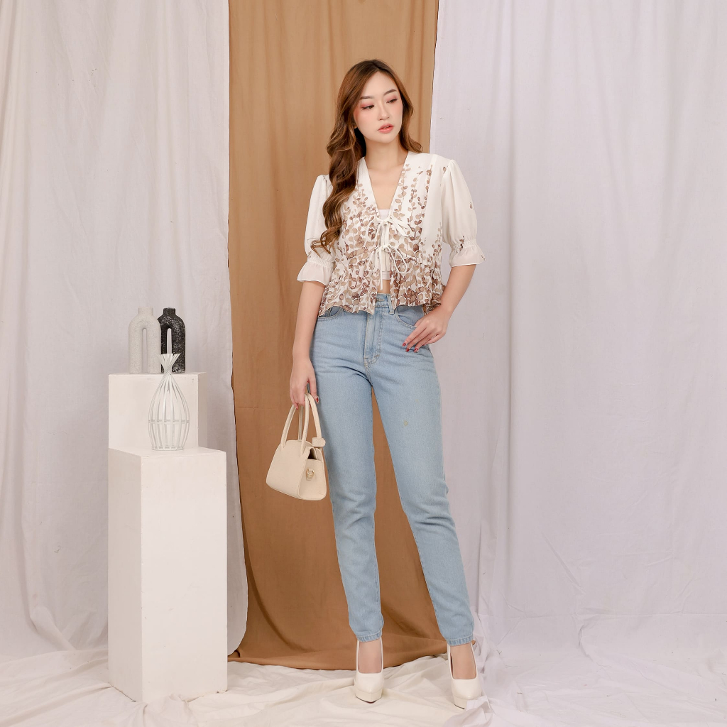 Be the first to review “AE Piona – Ruffled Ribbon Blouse Bunga-Bunga”